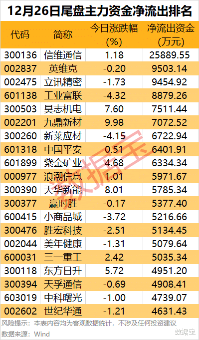 尾盘主力资金净流出方面,信维通信、英维克、立讯精密、工业富联、昊志机电、九鼎新材等个股尾盘主力资金流出居前。